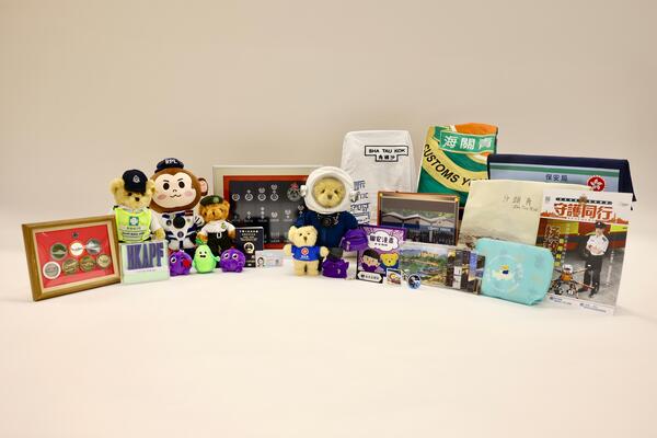 The items selected by the bureau include a national security-themed comic, a Security Bear plush toy, and promotional items featuring the cultural characteristics of Sha Tau Kok.